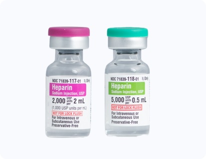 HEPARIN SODIUM 5,000 USP units per .5 mLHEPARIN SODIUM 2,000 USP units per 2 mL Heparin inhibits reactions that lead to the clotting of blood and the formation of fibrin clots both in vitro and in vivo. Heparin acts at multiple sites in the normal coagulation system. Small amounts of heparin in combination with antithrombin III (heparin cofactor) can inhibit thrombosis by inactivating activated Factor X and inhibiting the conversion of prothrombin to thrombin. Once active thrombosis has developed, larger amounts of heparin can inhibit further coagulation by inactivating thrombin and preventing the conversion of fibrinogen to fibrin. Heparin also prevents the formation of a stable fibrin clot by inhibiting the activation of the fibrin stabilizing factor.