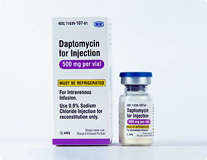 DAPTOMYCIN 500MG VIAL & 350MG VIALDaptomycin for injection is indicated for the treatment of adult patients with complicated skin and skin structure infections (cSSSI) caused by susceptible isolates of the following Gram-positive bacteria: Staphylococcus aureus (including methicillin-resistant isolates), Streptococcus pyogenes, Streptococcus agalactiae, Streptococcus dysgalactiae subsp. equisimilis, and Enterococcus faecalis (vancomycin-susceptible isolates only).